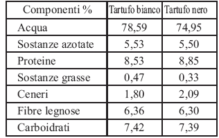 Dopo numerosi studi verificatisi nel corso degli anni, si è arrivati a determinare la composizione chimica del tartufo: